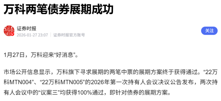 万科两笔中票展期通过了: